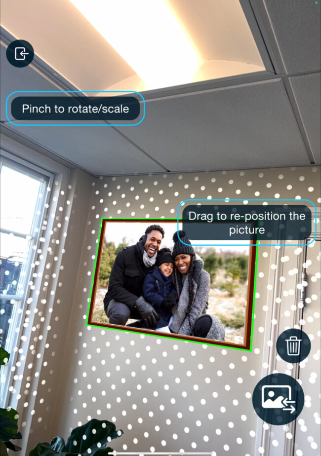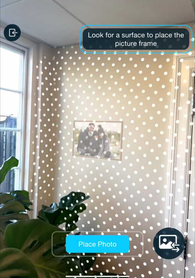 This AR Experiment is based around the idea of being able to pull the photos from your phone and place them on the walls of your real-world home as digital photo frames. What excites us most about this is a wearables empowered AR future where the photos in our home can be continually updated, scaled, and moved without any wall damage required!